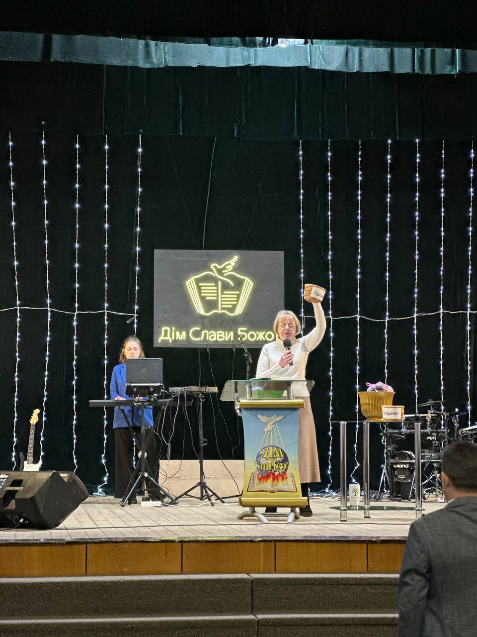 «Живим» і емоційним  видалось і служіння – жертва подяки Богу! Сестри  Ірина та Галина Віталіївна подякували Богу за те, що Він вибрав їх і спас, за захист, забезпечення, підтримку і відповідь на молитви, за церкву, пастора і його служіння, за сестер і братів, за милість Бога яку явив у минулому році. Зворушливо Галина Віталіївна, дякувала Богу, що визначив їй жити в Україні, і що вона українка, що вона не самотня, а має духовну сім’ю, яка фактично для неї є реальною сім’єю. З вірою сестра Ірина дала жертву подяки за навернення чоловіка і сина до Бога і повернення їх у церкву, і сестра Галина також з вірою проголосила, що її син буде спасенний і буде служити Богу. Молитви, які здійснювались за сестер, були ревними і в єдності, проголошувались будівничі слова віри про реальну дію Божої благодаті на вирішення і виповнення всього за,  що вони дали жертви подяки Богу.