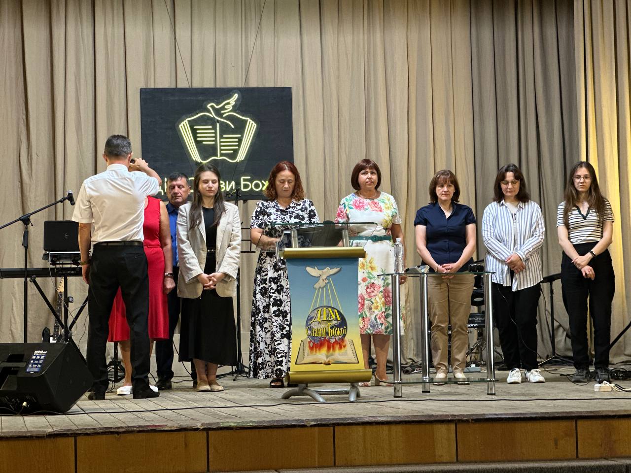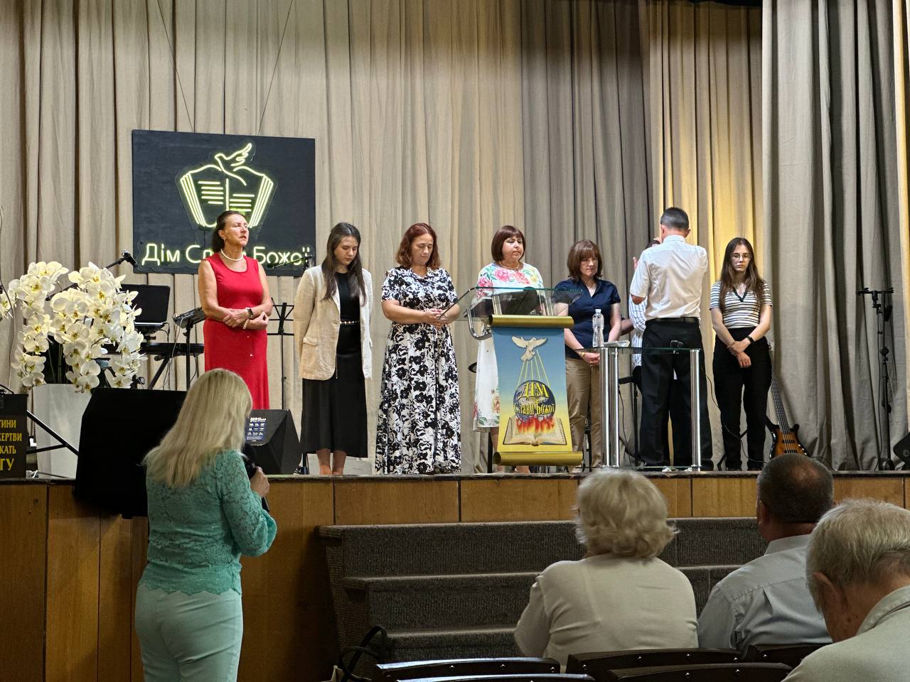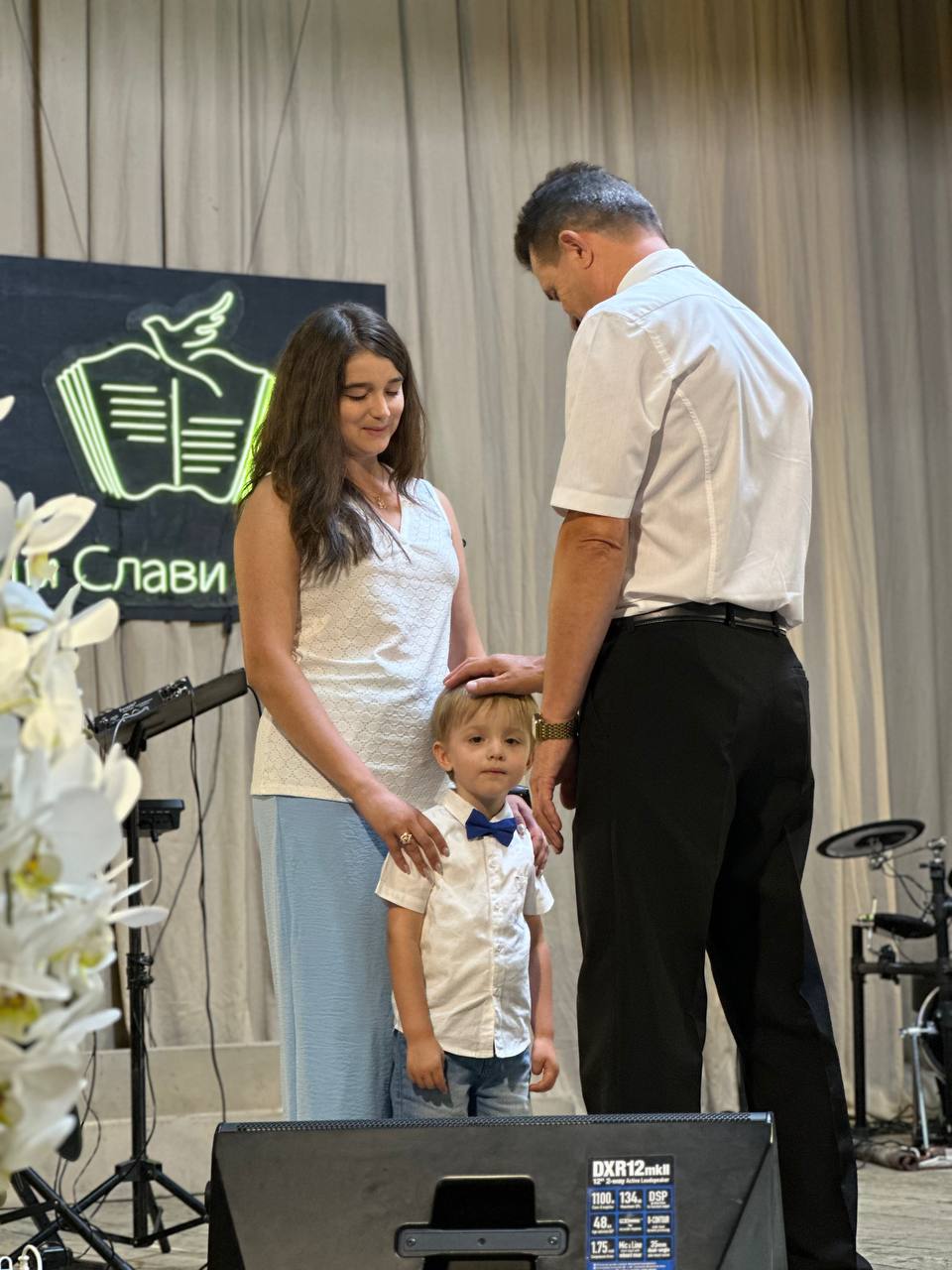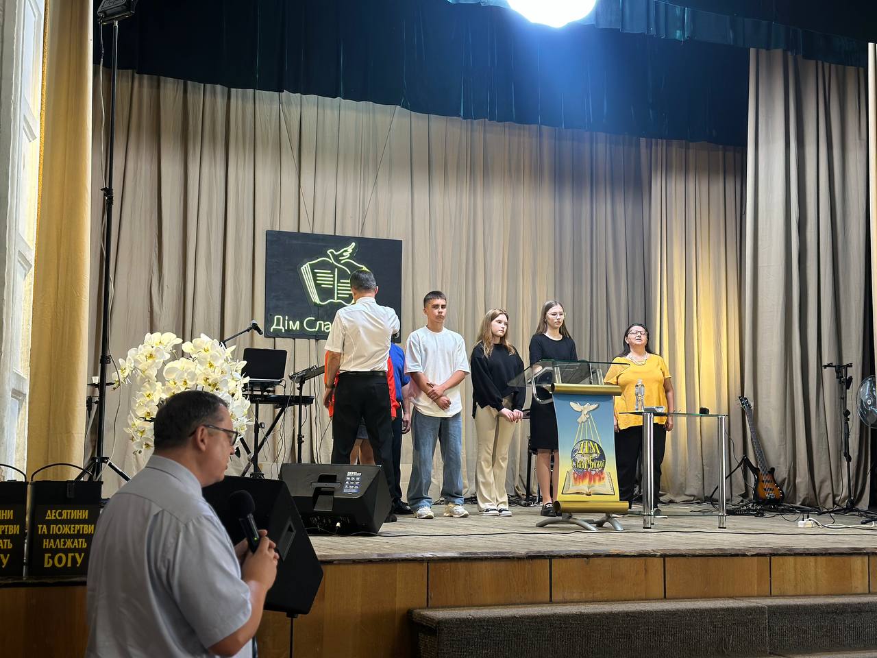 Пастор Роман і вся  церква у єдності і в усвідомленні духовного захисту,  молилися, благословляючи   всіх дітей: спочатку дошкільнят, потім учнів 1-9 класів,  старшокласників і студентів навчальних закладів усіх рівнів.  Особливою на такому служінні є молитва за служителів  і помічників дитячого служіння – недільної церковної школи. Дуже зворушливо пастор Роман розповідав про важливість цього служіння, про посвяченість тих, хто був на сцені. Тому молитва в залі була одностайна і сильна!