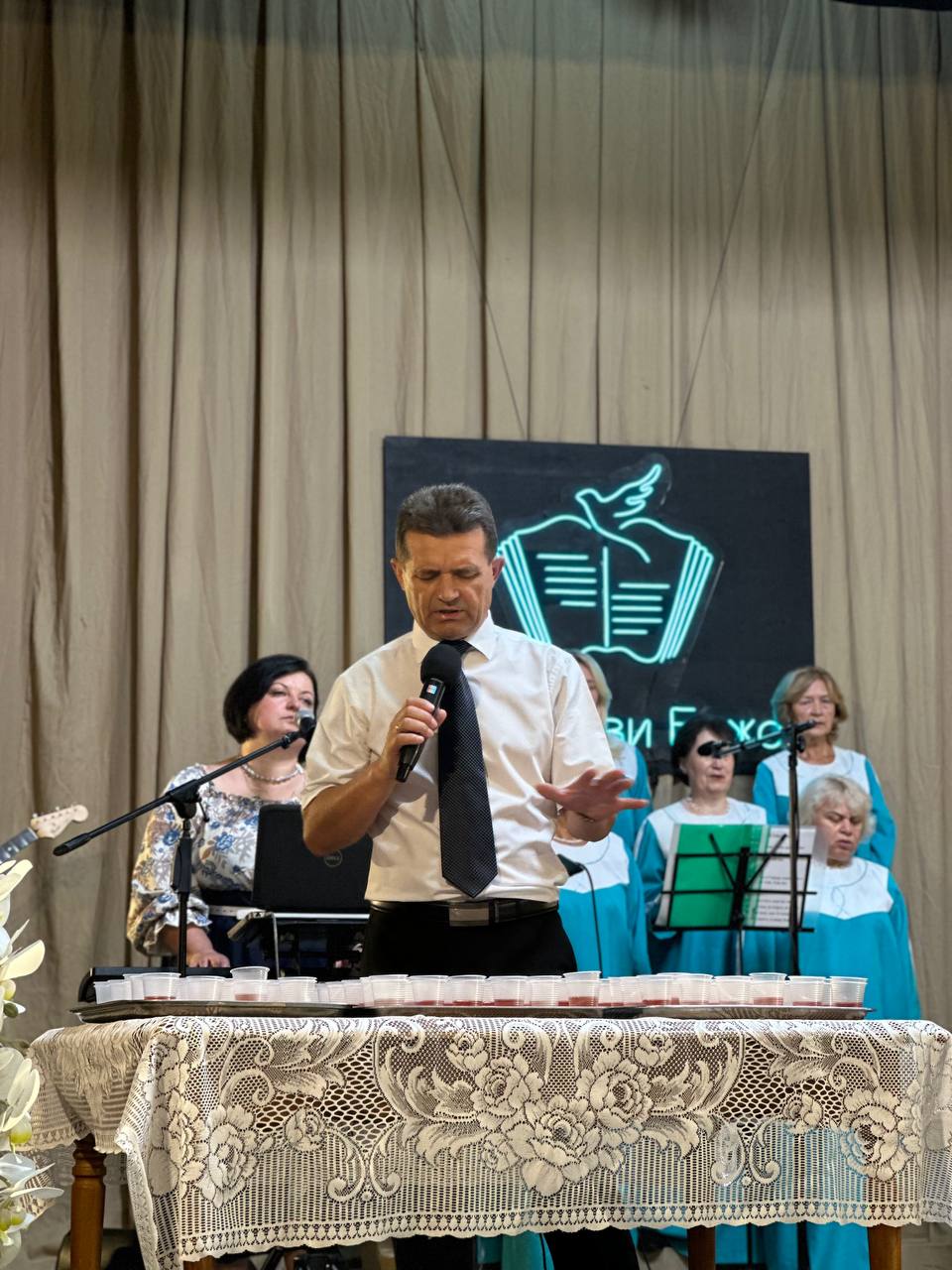 Неперевершеним був час поклоніння, в реальному Божому помазанні. Бо саме так,  всі присутні в залі і ті хто долучився он-лайн,  мали змогу підготувати свої серця до духовного акту – Причасті. Пастор церкви Роман Продивус, призвавши Божу благодать, здійснив молитву до Причасті. Він просив Господа наповнити братів і сестер Своїм життям, щоб омити, очистити, забрати гріх і все негативне. А натомість, кожного наповнити Своїм миром, силою, любов’ю. З подякою моливсь пастор Роман за єдність, розуміння та любов у церкві.